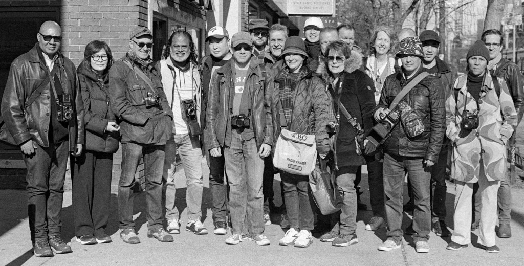 It’s a warm day in February (Saturday, Feb. 10) and the Toronto Film Shooters are off on what’s called Jo-Anne’s Pastry and Chocolate Trail Through The City That’s Jo-Anne with the bag next to Marion just right of center.